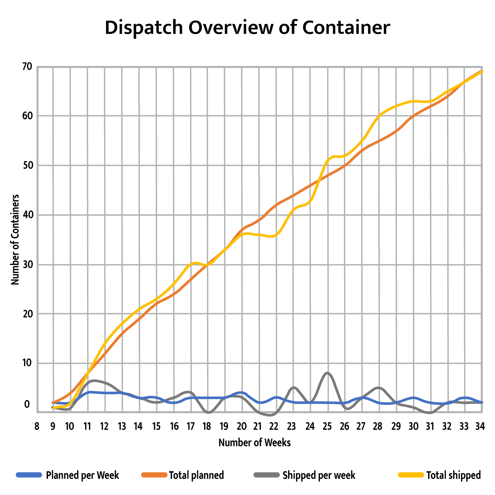 A complete project or a line and even individual machines are composed of a complex set of parts. All companies of the Partnership of Companies keep a large stock of parts. With the current uncertain supply chain, the purchasing department is very alert to those parts where problems in the delivery can occur. We work with regular suppliers with whom we have good experiences. When making a delivery scheme, we have good consultation with all the companies involved. The delivery times of all suppliers are entered in a dynamic life schedule. We try to determine the number of containers for each supplier as accurately as possible. For this we make loading drawings per container. When drawing up a delivery schedule, you have to deal with various variables that you have no influence on. In 2022, for example, there was a major problem with the availability of containers. Prices in 2022 were also extremely high. Fortunately, these are back to a normal level. We pay a lot of attention to the loading of the containers. When possible, we take pictures of how it is loaded. Clear collie lists and good markings on the parts in the containers are very important things. We prepare it in such a way that we do not have to search for the location of the machines and parts in the container where it has to come in the project.