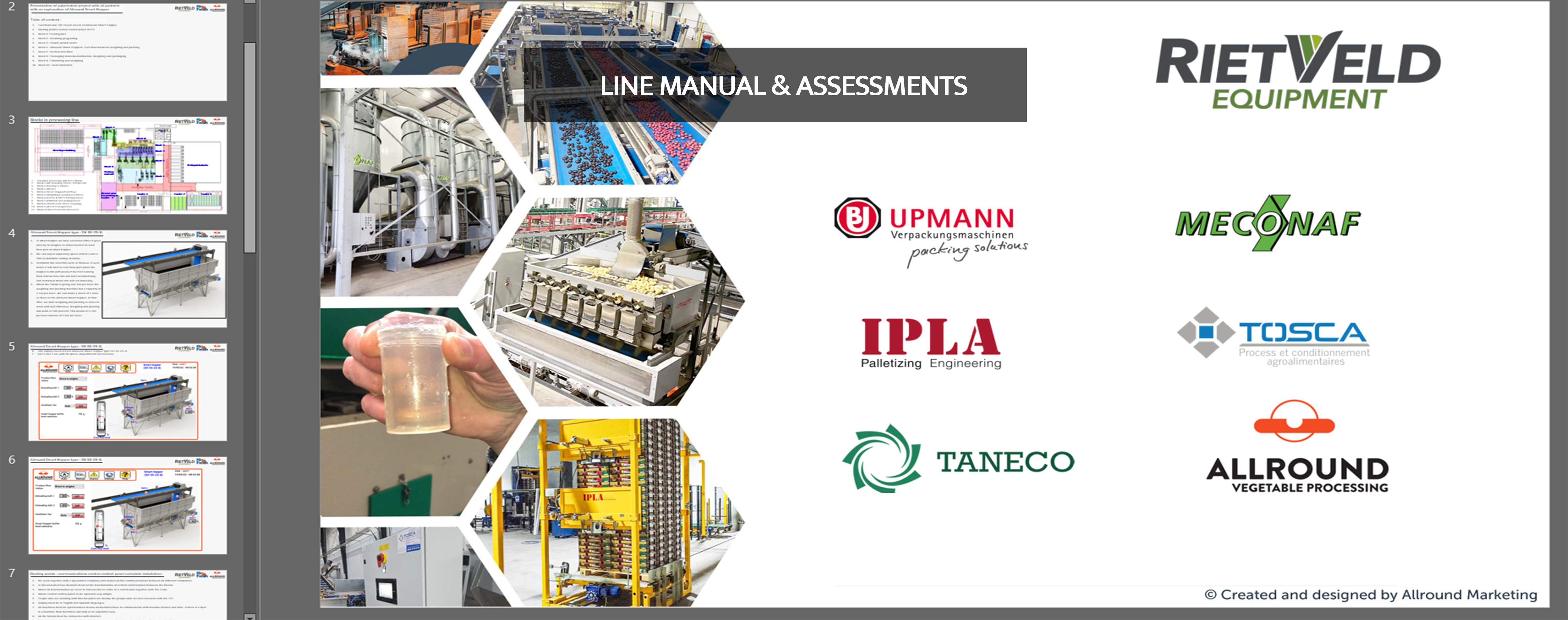 When we have put together the final version of the installation and/or project, we will work with you and the participants in The Partnership of Companies to create a plan for the day to day management of the project. We bring all the aspects that we have already discussed here together in a so-called line manual. In this line manual we make clear what you can expect when you start using the new installation. All parts of the different participants are analyzed in detail. We make everything per component very transparent. We quantify the entire project. With each transition of the product (potatoes, onions, etc.) in the line, we show what happens qualitatively and quantitatively. With all these data we can make a proposal for the central control system. When the central control system has also been worked out, we can simulate production days. we enter the data from the input at the beginning of the line until the paletizing in the model. We go through the whole process. What are the effects in the different stages in the line. what has a certain suggested grading schedule for effect after a day of running. Where do the bottle necks come out. When did we reach the critical grading with accompanying packaging? What problems can we expect and tackle in advance.