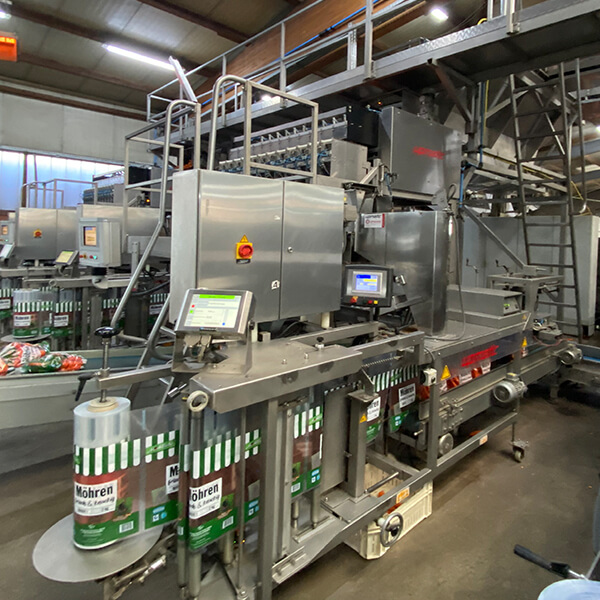 The retractable storage funnel AST-XX is the ideal solution for the gentle repackaging of loose products into a crate. With its automatic crate feeding system and integration with palletizers, it enables an efficient and seamless packaging process.The AST-XX is versatile and suitable for a variety of products such as potatoes, onions, carrots, and more. Its special design ensures a low drop height for loose products, minimizing the risk of damage.The technical specifications of the AST-XX are impressive. It offers a maximum filling capacity of 22.5 kg and a packing speed of up to 17 cycles per minute. The minimum crate size is 400×300 mm, with the minimum crate height depending on different formats and crate lengths. The maximum crate size is 600×400 mm with a maximum height of 350 mm for cartons with flaps.